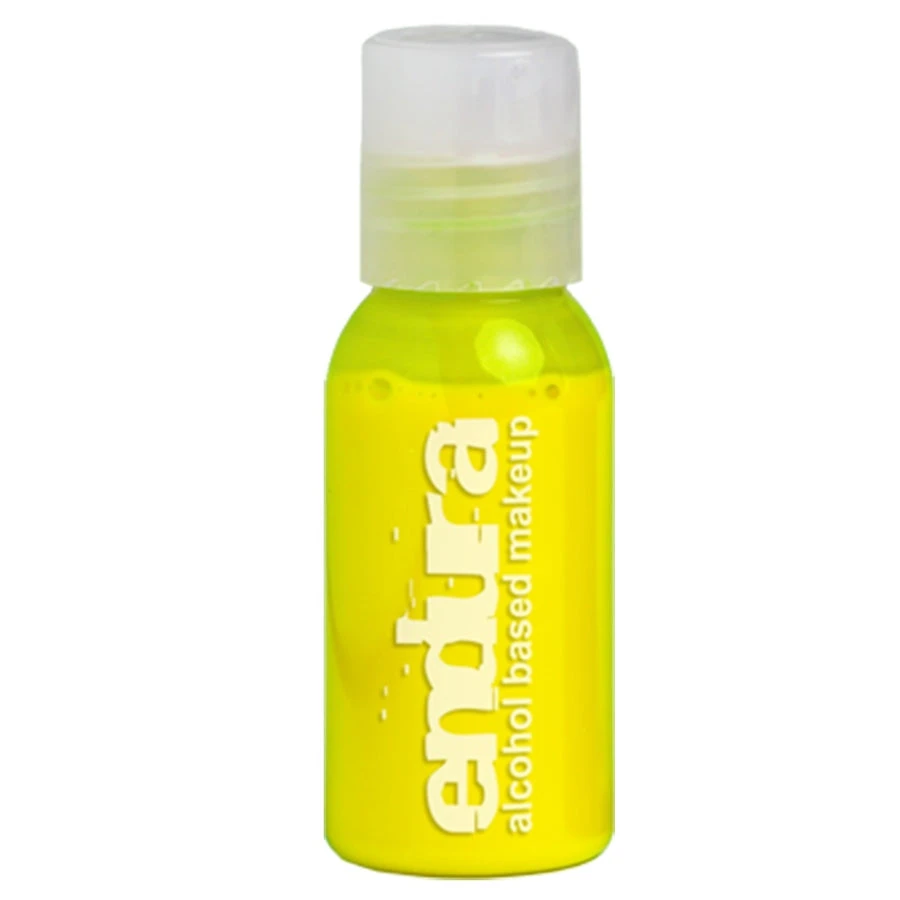 EBA Endura Alcohol-Based Airbrush Makeup Bright Yellow, 30ml. Endura is een op alcohol gebaseerde make-up die bekend staat om zijn duurzaamheid, droog snelheid en dekking. Omdat Endura zo goed presteert onder extreme omstandigheden, is Endura de voorkeur voor artiesten die op zoek zijn naar duurzame, water-, zweet- en transferbestendige airbrush make-up. Endura is gemaakt voor de airbrush maar kan ook met het penseel of de spons op de huid worden aangebracht.