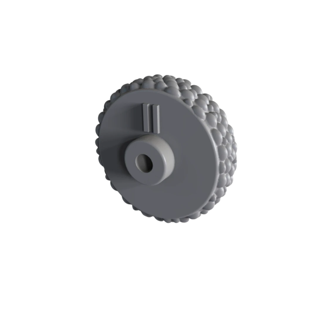 We hebben 8 wielen met verschillende structuren in ons assortiment. Afhankelijk van wat voor klei je gebruikt, zullen de resultaten variëren in aan je werk. Hoe harder de klei, hoe minder impact de textuurwielen zullen hebben. Voor poriewielen betekent dit dat de grotere poriewielen kleinere poriën zullen creëren op hardere klei dan op een zachtere klei.