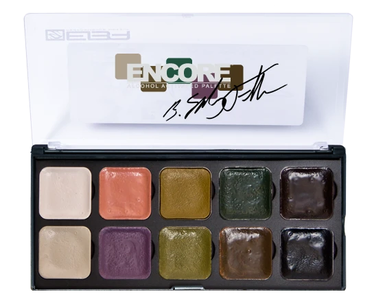 Encore™ Alcohol Activated Palette – Autopsy is ontworpen door Bruce Spaulding Fuller (Make-up artist van onder andere Resident Evil, Preditor 2, Buffy the Vampire Slayer, The Orville, Amarican Horror Story en Goliath).