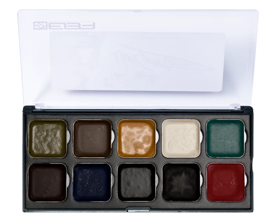 Encore™ Alcohol Activated Palette – Zombie palet bied ongeëvenaarde duurzaamheid, hoge pigmentatie en een brede selectie van kleuren die onvoorstelbaar goed op de huid blijven zitten. Alle ingrediënten zijn van een cosmetische rang en alle pigmenten worden goedgekeurd door de FDA. Te gebruiken op de huid, foam latex, latex en sillicone protheses en geven een zeer realistische natuurlijke afwerking. Het droogt direct en is water, transpiratie en wrijf vast