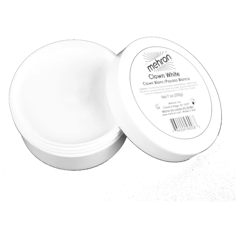 Mehron Clowns White – 200gr. is het meest verkozen product door professionele clowns en mimespelers door de kwaliteit en goede dekking. Deze super gladde en ultra witte crème dekt efficient zonder uit te drogen en te barsten zelfs onder de meest extreme condities tijdens het optreden. Mehron gebruikt voor dit product een hoge concentratie titanium dioxide en heeft hiermee een gladde en eenvoudig op te brengen schmink gecreeerd.