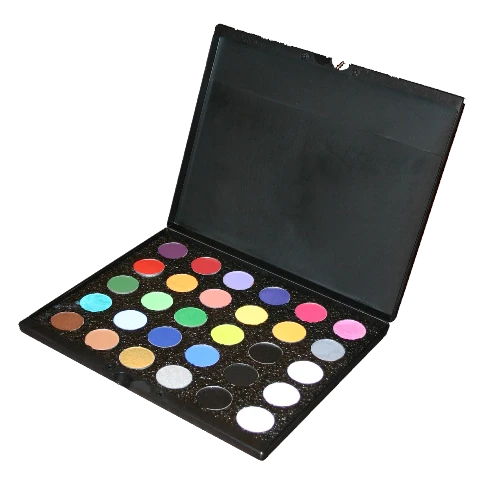 Paradise Makeup AQ â„¢ is Mehron’s wereldberoemde, premium kwaliteit en op waterbasis schmink voor gezicht en bodypainting. Het is een formule van halfzachte, door water geactiveerde schmink die een rijk gepigmenteerde, mooie en gedurfde kleuren die je design tot leven zal brengen. Je transformeerd je model volledig met deze fantastische kleuren. Of het nu voor een facepaint of bodypaint is. Paradise Makeup AQ â„¢ is beschikbaar in een breed scala van kleuren. Het is de waterschmink die de voorkeur van de bekroonde kunstenaars over de hele wereld heeft. Dit 30 kleurenpalette heeft navulbare cupjes van en zit in een handig magnetisch palette die je makkelijk mee kan nemen.