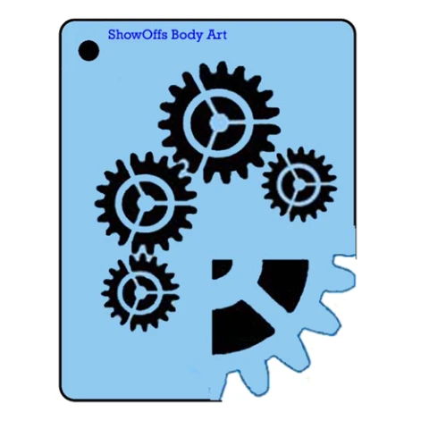 ProAiir QuickEZ Gears sjabloon is een super handig schminksjabloon (airbrushsjabloon) gemaakt door ProAiir om je werk te versnellen. Met deze handige van maylar gemaakte sjablonen, breng je in een handomdraai textuur aan in je schmink en bodypaint werk. Je voorkomt ellelange wachtrijen bij het schminken of een vermoeid model bij het bodypainten. Deze wil je dus zeker in je airbrush-kit of schminkkoffer hebben zitten.