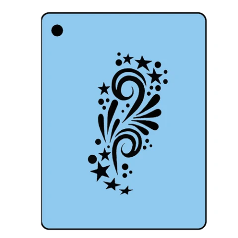 ProAiir QuickEZ Stars and Swirls sjabloon is een super handig schminksjabloon (airbrushsjabloon) gemaakt door ProAiir om je werk te versnellen. Met deze handige van maylar gemaakte sjablonen, breng je in een handomdraai textuur aan in je schmink en bodypaint werk. Je voorkomt ellelange wachtrijen bij het schminken of een vermoeid model bij het bodypainten. Deze wil je dus zeker in je airbrush-kit of schminkkoffer hebben zitten.