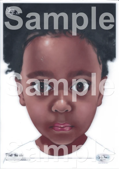 Schmink Oefenbord Skye Formaat A4 een gekleurd kinderhoofd om je kleuren te testen op de huid