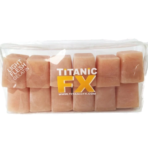 Titanix FX Gelatine Light Flesh 1kg (300bloom)Â word gebruikt voor het maken van prothesess en kan ook direct op de huid worden toegepast.
