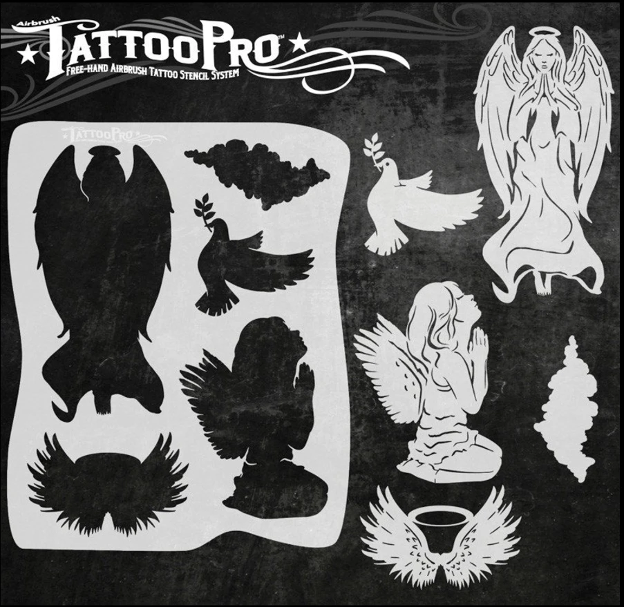 Wiser’s Airbrush TattooPro Stencil – Angels zijn Airbrush sjablonen speciaal ontworpen door Bodypaint en Graffiti artist Wiser Oner.
