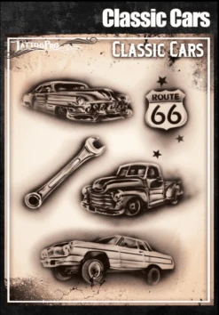 Wiser’s Airbrush TattooPro Stencil – Classic Cars zijn Airbrush sjablonen speciaal ontworpen door Bodypaint en Graffiti artist Wiser Oner.
