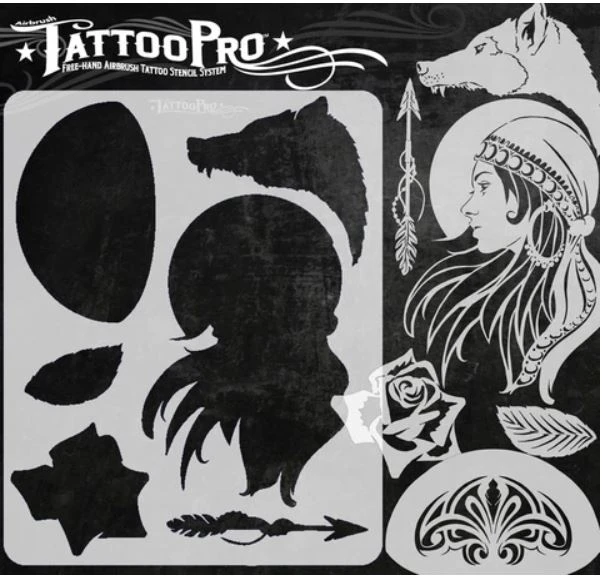 Tip: Doe eens gek en gebruik kleur in je zwart-grijs tattoo. Kijk voor geweldige waterbestendige Airbrush inkt eens bij ons assortiment ProAiir. In het filmpje hieronder kun je zien hoe het werken met de stencils in zijn werk gaat.