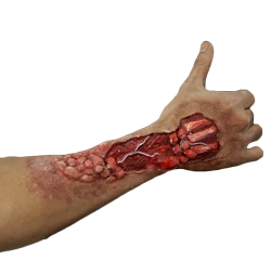 Woochie Latex Appliance Eaten Away, makkelijk aan te brengen Latex Prothese die zeer mooi is en geraffineerd. Je maakt een geweldige indruk met deze prothese. Woochie Protheses zijn van hoogwaardige kwaliteit en komen zeer realistisch over. Zorg voor een goede kleuring en werk de randen mooi weg.